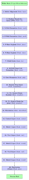 \node (start) [startstop] {\textbf{Wafer Start} (P-type Silicon Substrate)};